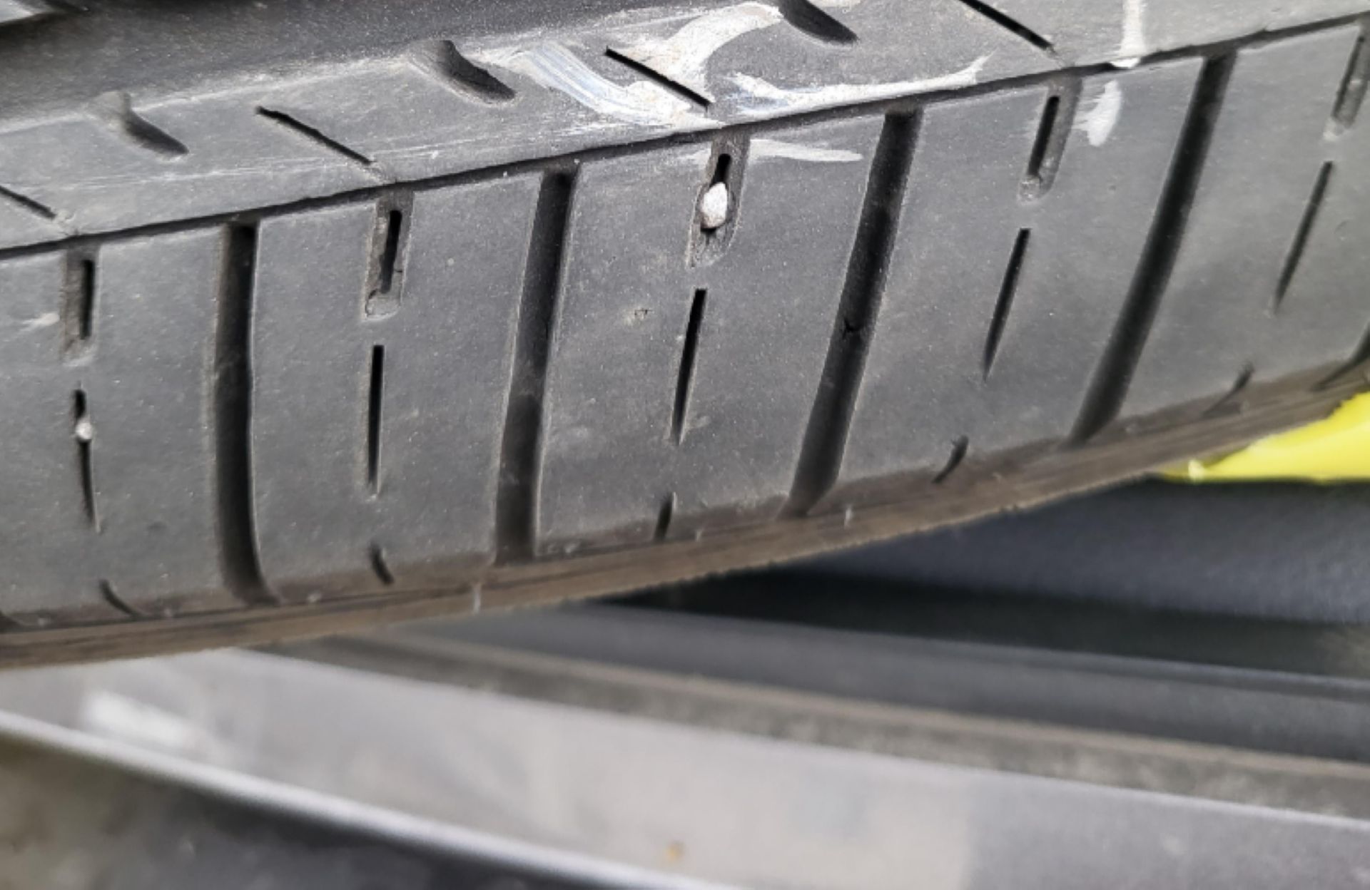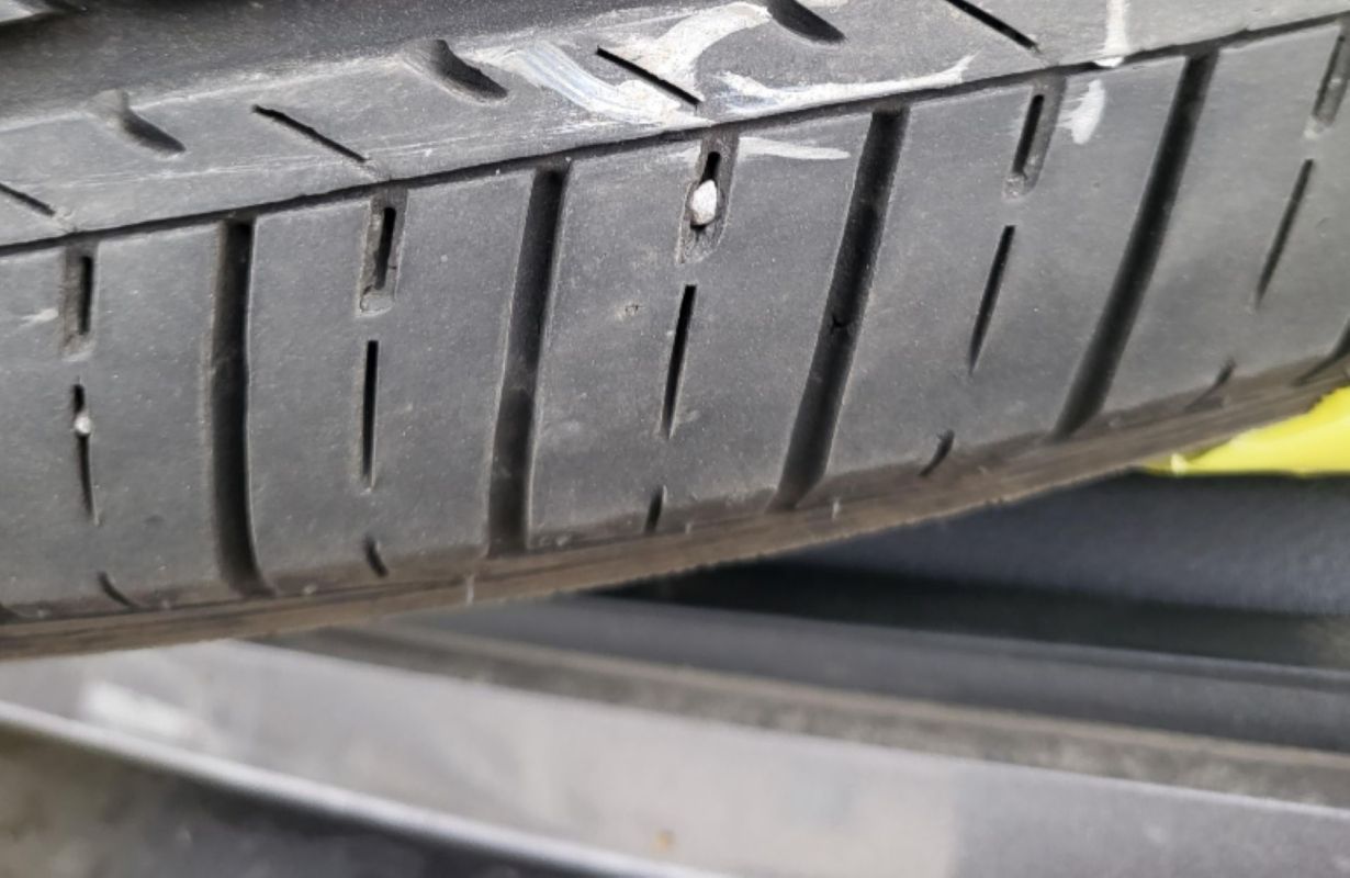 A confused driver shared an image of the damaged tire on their rental car on Reddit and received an answer to the mystery, "What could possibly cause this type of damage?"