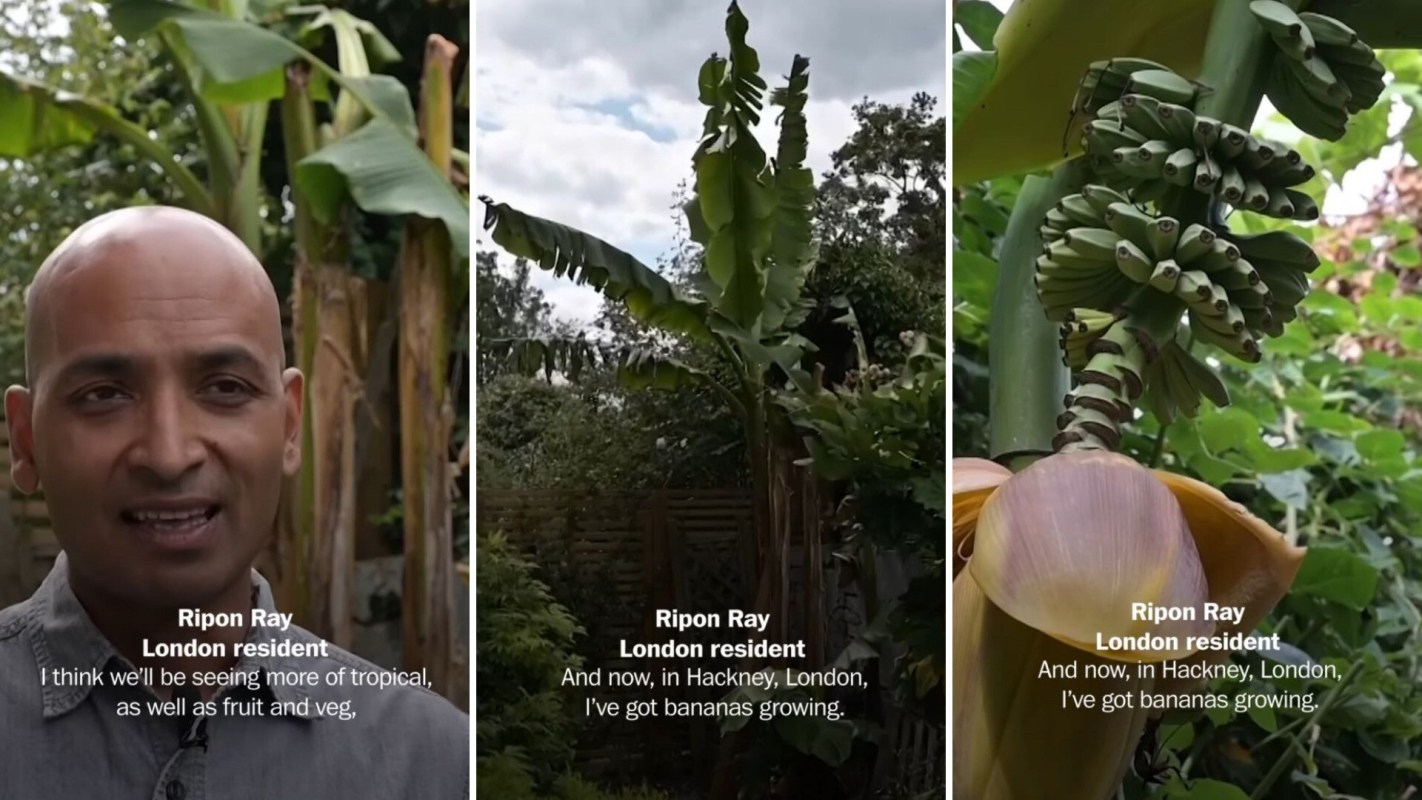 Bananas are a popular fruit worldwide, but for most of the United States and Europe, they're an imported treat. The tropical trees need warm conditions year-round to bear fruit, and the usual weather cycle in areas far from the equator includes a cold winter. However, thanks to the world's increasing temperature, London resident Ripon Ray says he's successfully growing bananas — right in his backyard.