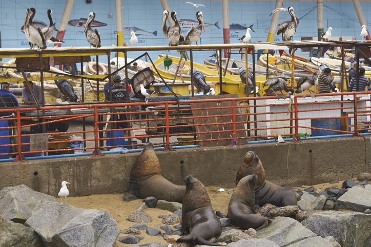 The video shows a South American sea lion approaching fishermen as they move their haul into a truck. One fisherman allows the sea lion to get close, and even tosses it a few fish in a video posted to Facebook by Nature Heaven.