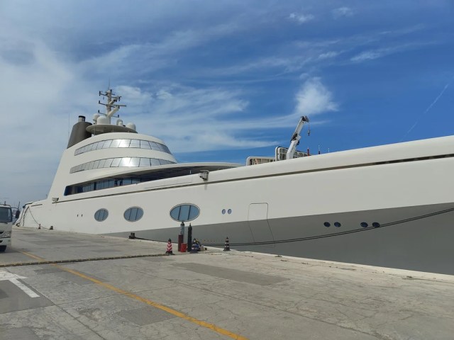 The original poster identified the vessel as the M/Y A, a unique ship owned by a Russian billionaire. The photos show a vessel with a smooth, stark white hull that looks more like a submarine or a spaceship than a traditional yacht.