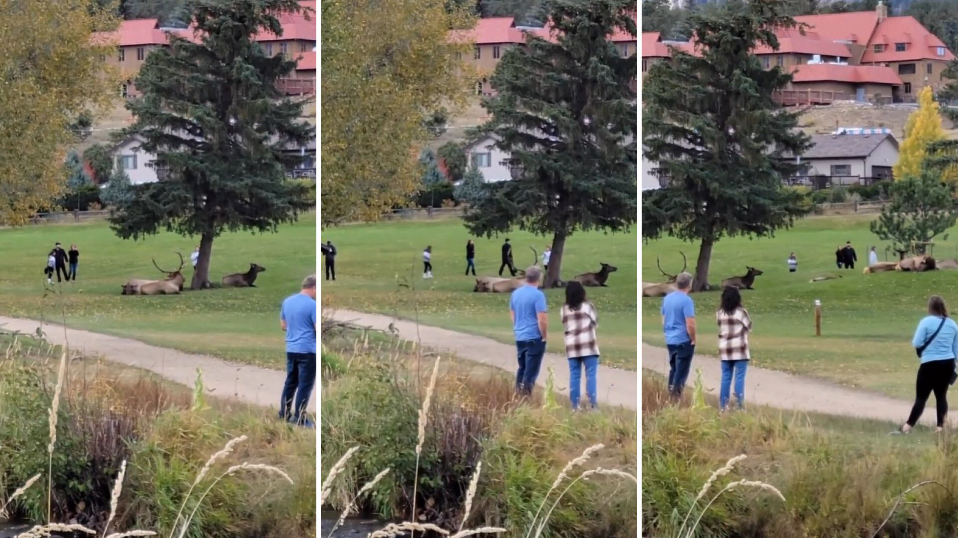 The highlighted video was taken in Estes Park, where, according to the park website, humans should stand 75 feet away from elk at all times for safety precautions.