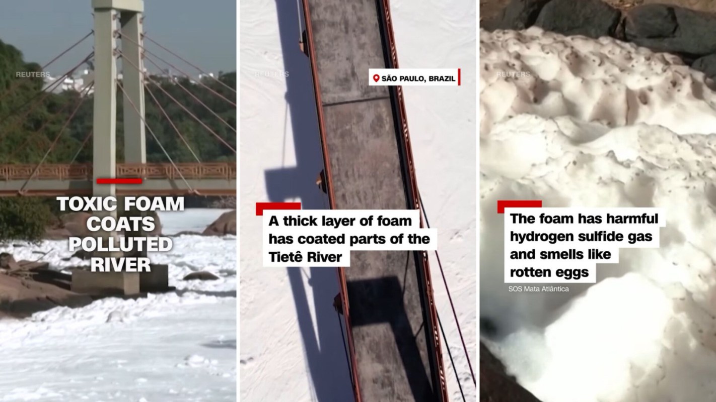 A stretch of Brazil's Tietê river is covered with a smelly, toxic foam caused by household detergents, and conservationists are demanding action.