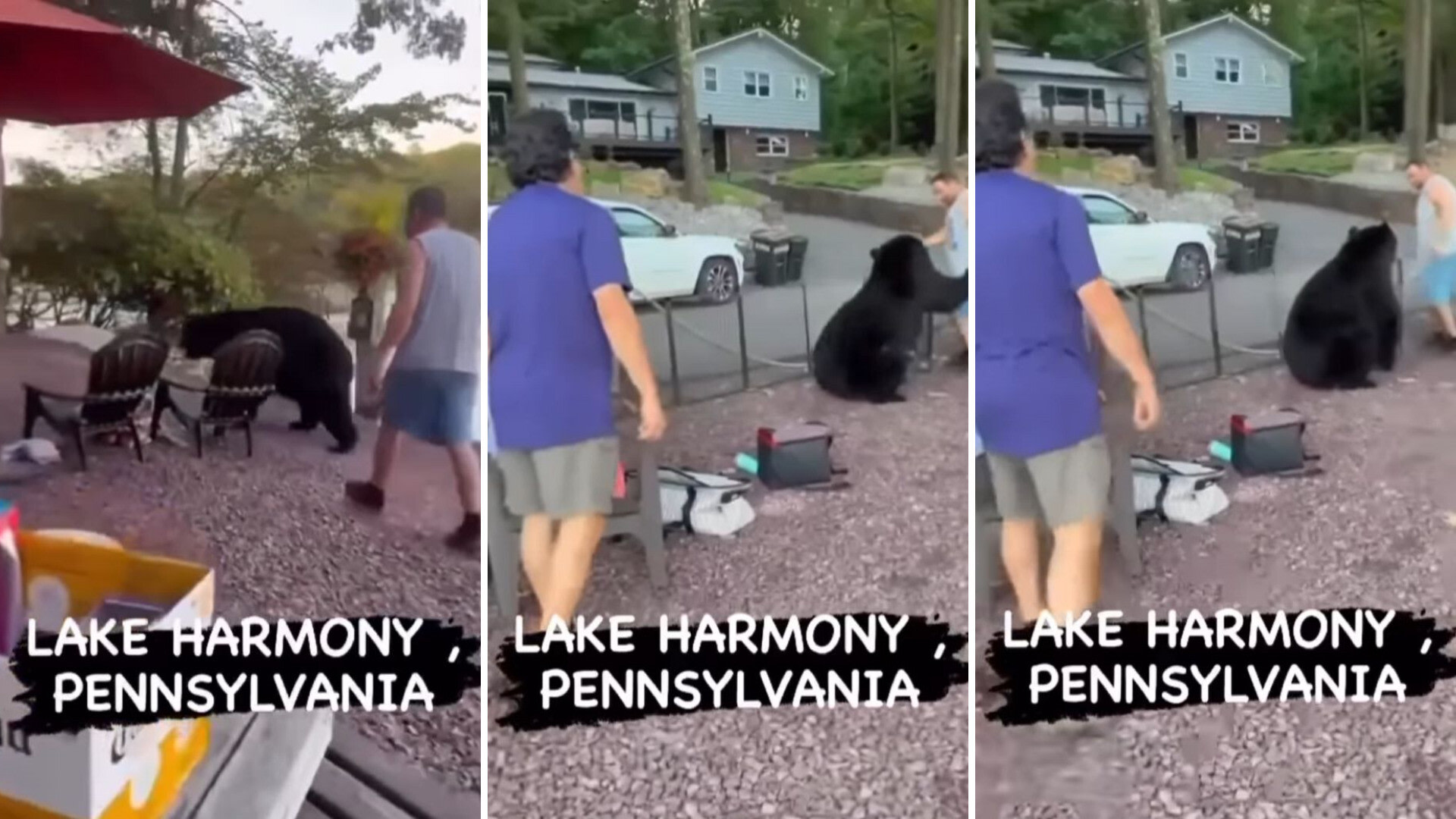 The incident took place in Lake Harmony, Pennsylvania, and it appeared the bear may have wandered into a lakeside campground. Instead of talking calmly to the creature, a few people crept along behind it.