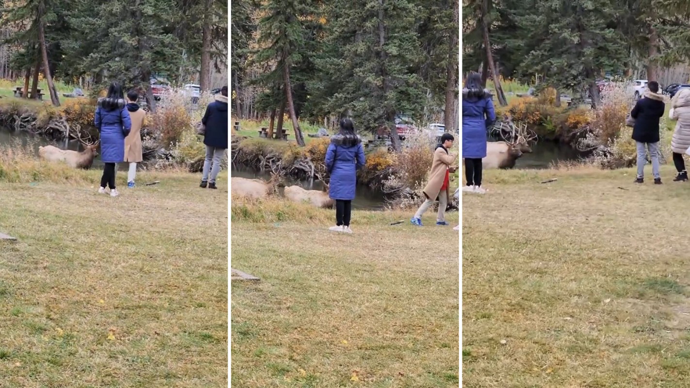 A new video shows selfish tourists getting dangerously close to elk for a photo opportunity.