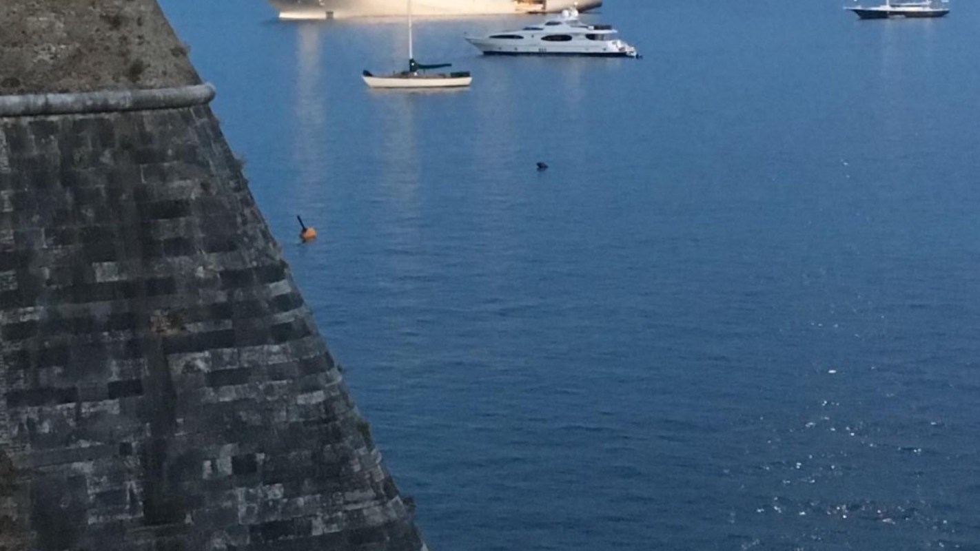 A Reddit user shared a photo of the yacht in the waters off Corfu, reflecting the dwindling light as the moon rose in the sky.