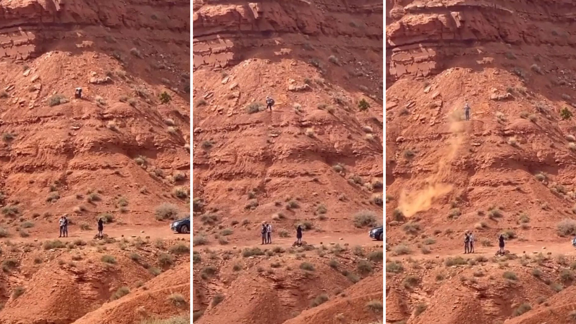 The Instagram account Tourons of National Parks (@touronsofnationalparks) posted the clip with a quote from the person who took the video: "As I was driving by, I saw this guy climbing the rock formation and throw rocks in the direction of his group."