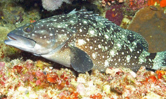 The whitespotted grouper is a fish that inhabits shallow waters and is commonly found in coral reefs and rocky areas, per Animalia. Like other grouper fish, it plays a crucial ecological role in maintaining the health of coral reefs by helping to balance marine populations. They primarily eat smaller fish, octopuses, and crustaceans.