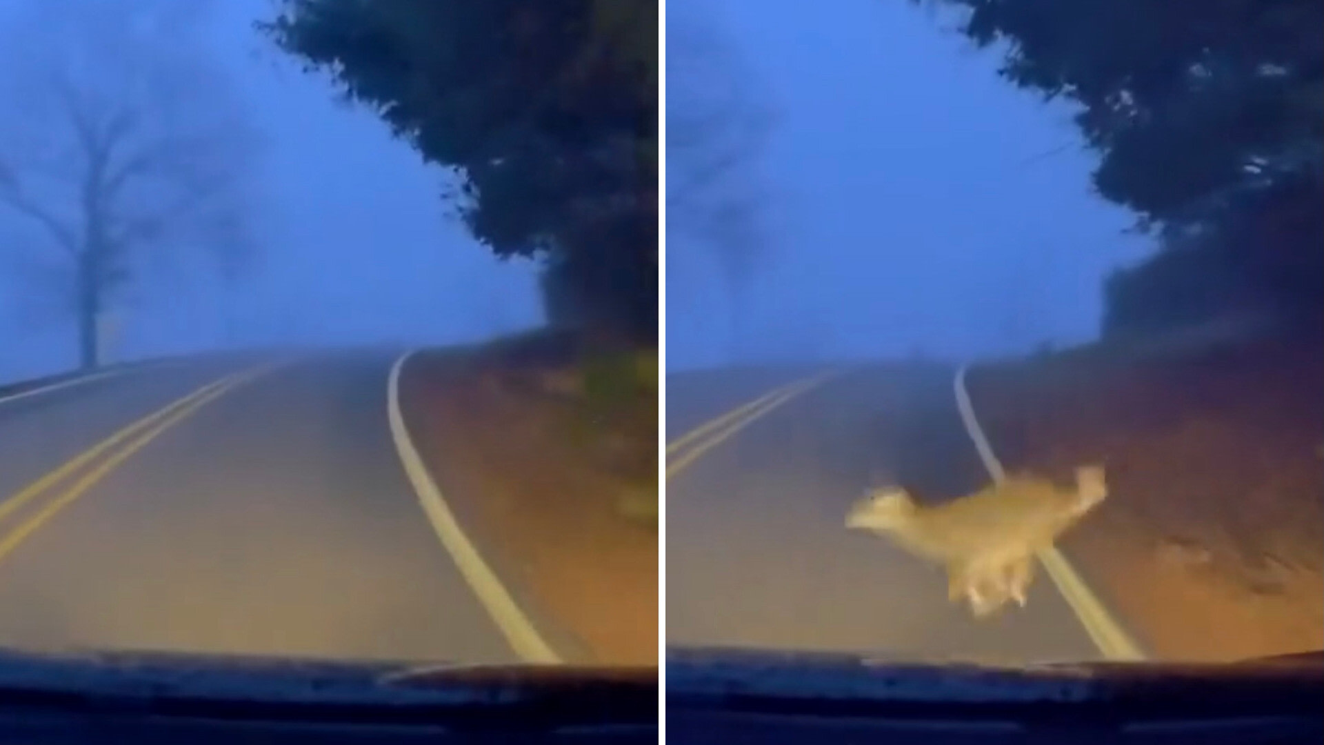 In the r/whatisit subreddit, one Reddit user shared a heart-stopping clip of an unidentified animal running out into the road in front of their moving car and just barely escaping what would no doubt have been a critical or fatal collision.