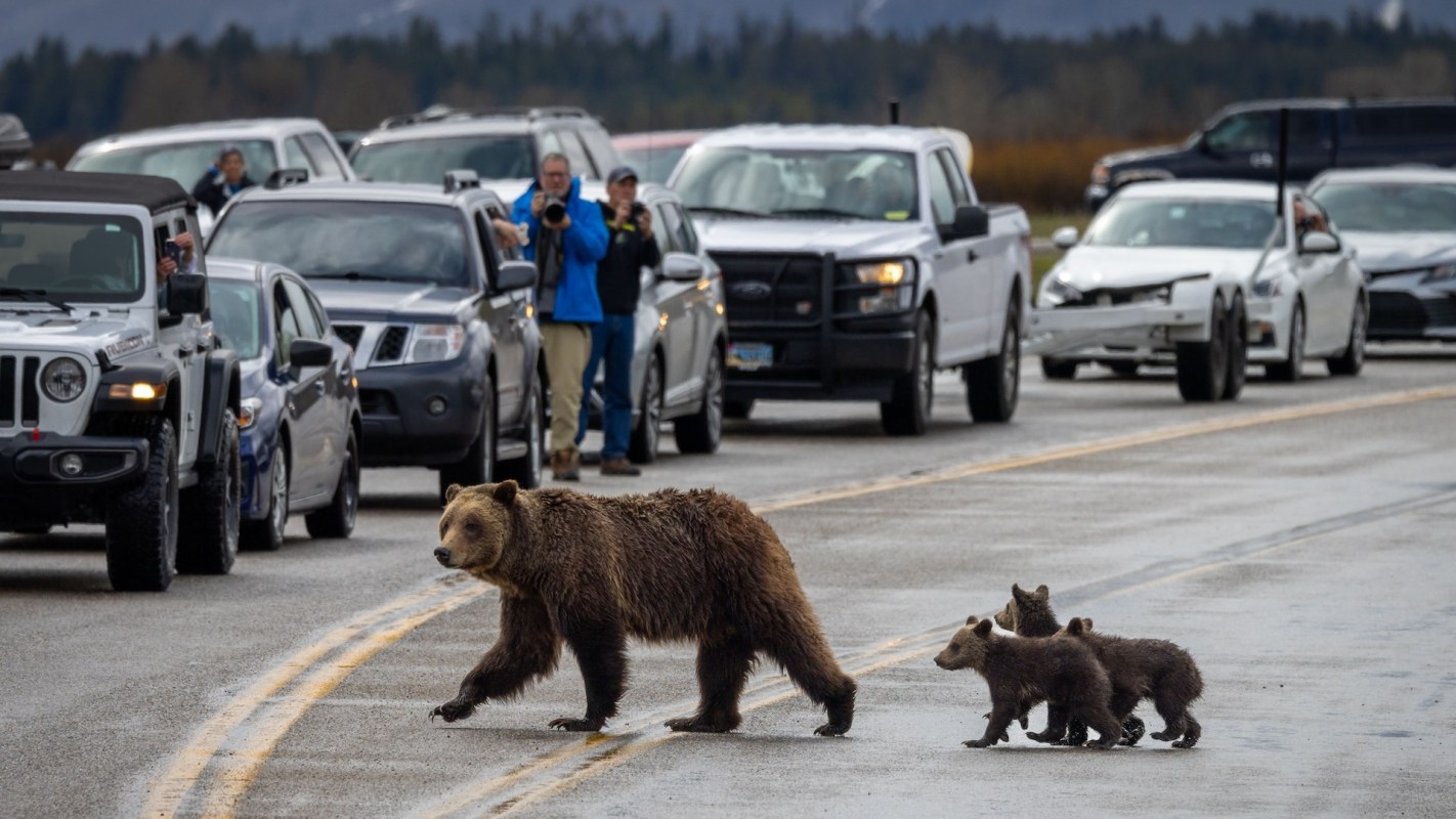 Instagram account TouronsOfYellowstone (@touronsofyellowstone) posted a video of people stopping their cars and exiting vehicles to get closer to a bear in Yellowstone National Park, taking photos and disregarding their own safety or the safety of the wild animal.