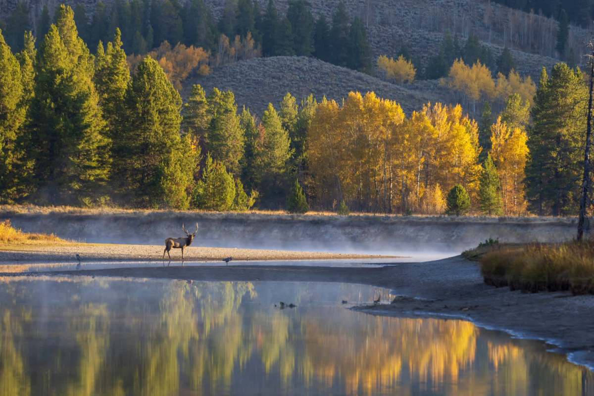 The account Tourons of Yellowstone (@touronsofyellowstone) shared a video from wildlife photographer Greg Graham (@greggraham) that showed an elk standing in a lake with park visitors all over the bank.