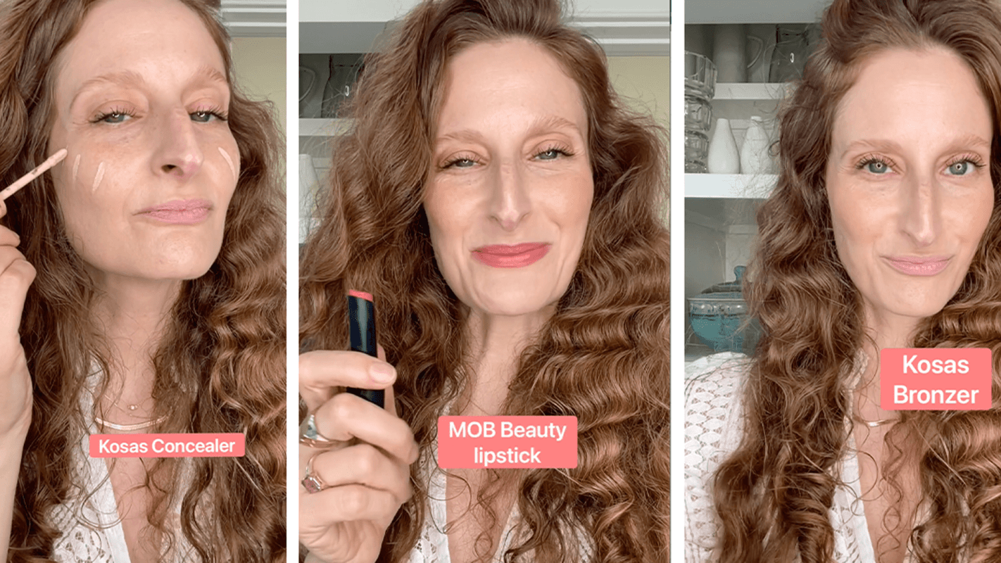 This hack is not only perfect for quick makeup application with only a single product, but also creates a more natural look with a cohesive color palette. The MOB Beauty Cream Lipstick that Denno uses is clean, creamy, and vegan and comes in an infinitely-reusable $5 capsule made with post-consumer recycled materials. Kiss packaging waste and nasty ingredients goodbye. You can also build onto your blush with a lip and cheek cream – a multi-tasking lipstick and blush hybrid. This Tower 28 tinted balm is buildable and safe for cheeks and lips without harsh chemicals.