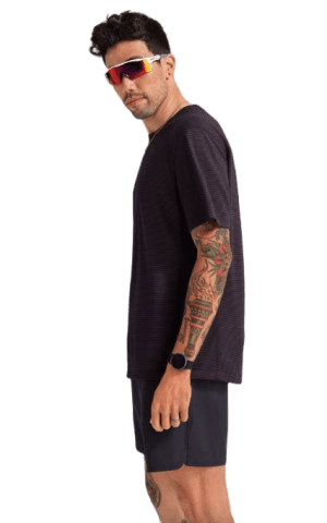 100% recycled materials (poly + spandex) and moisture-wicking, antimicrobial properties with a minimalist aesthetic.