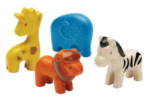This set of four wild animals are made from sustainably harvested rubberwood trees, non-formaldehyde glue, and non-toxic dyes. A better choice for toys that may find themselves nibbled on.