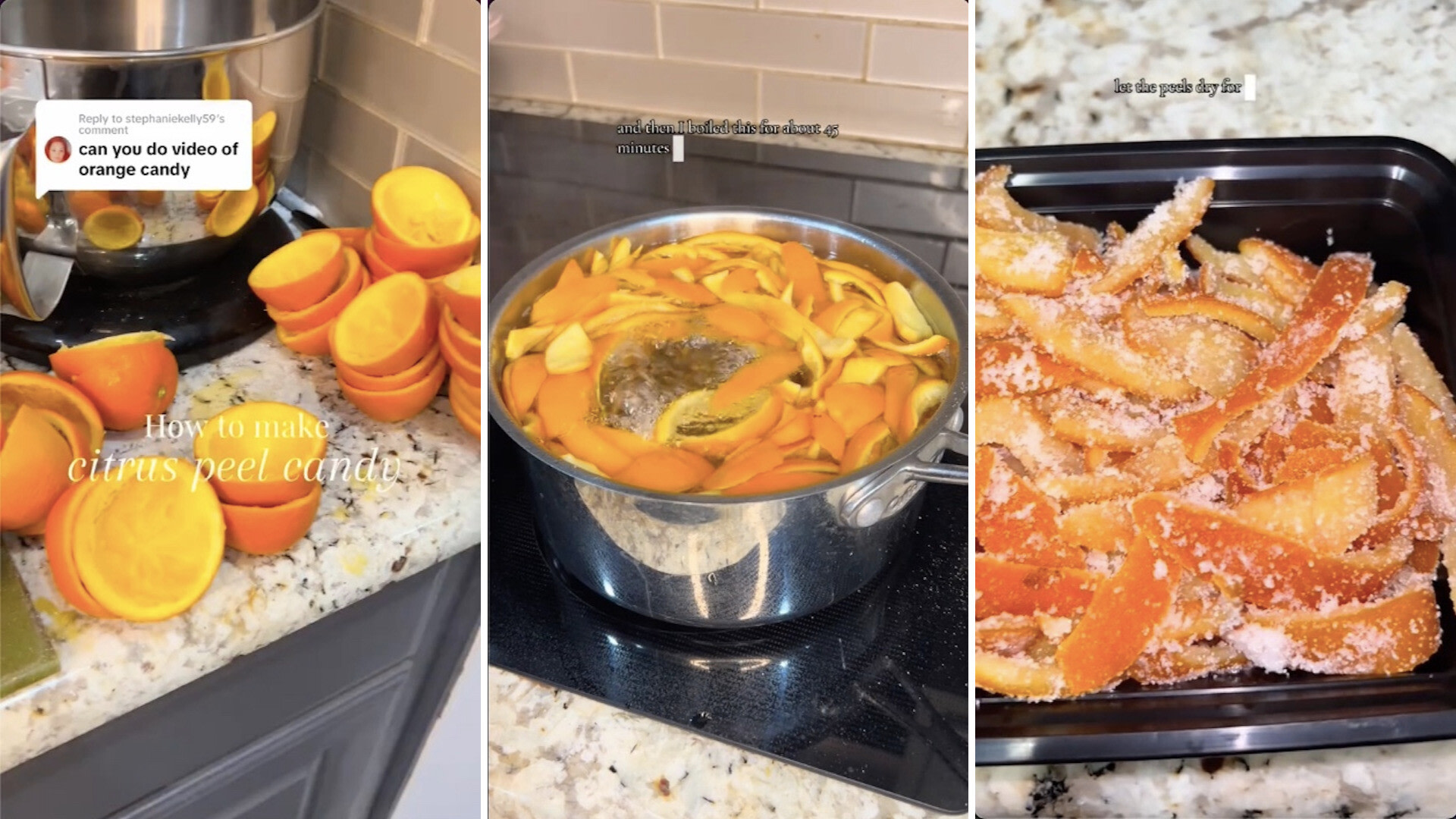 Shay Yvonne (@thatchristianhomemaker7) is a TikToker who shares recipes and tips for keeping a sustainable kitchen. In one clip, they explained how to make candied orange peels.