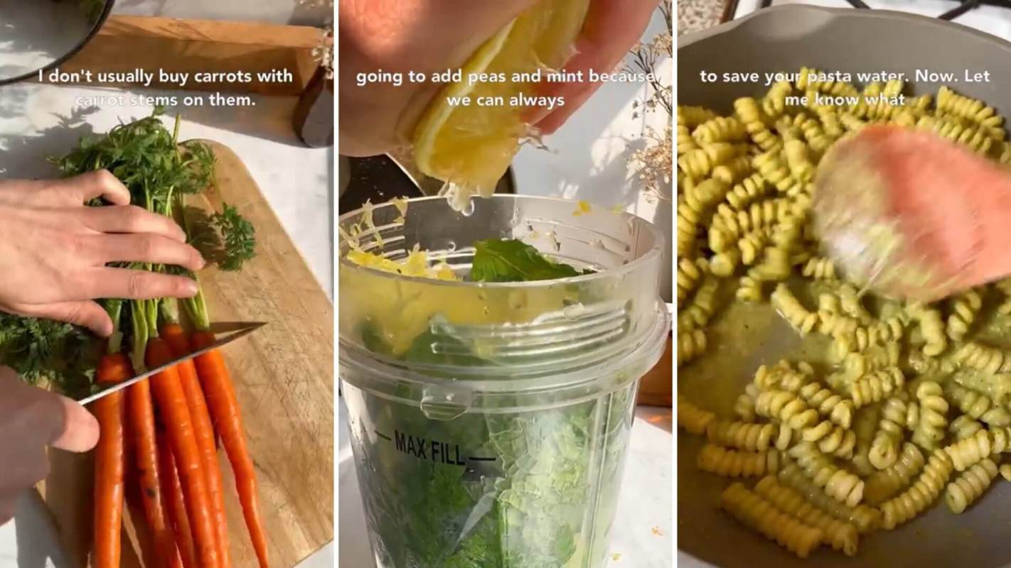 Have you ever wondered how you can cut down on your produce waste and still have a delicious pasta dinner? Here's a hack to get the pesto both worlds.