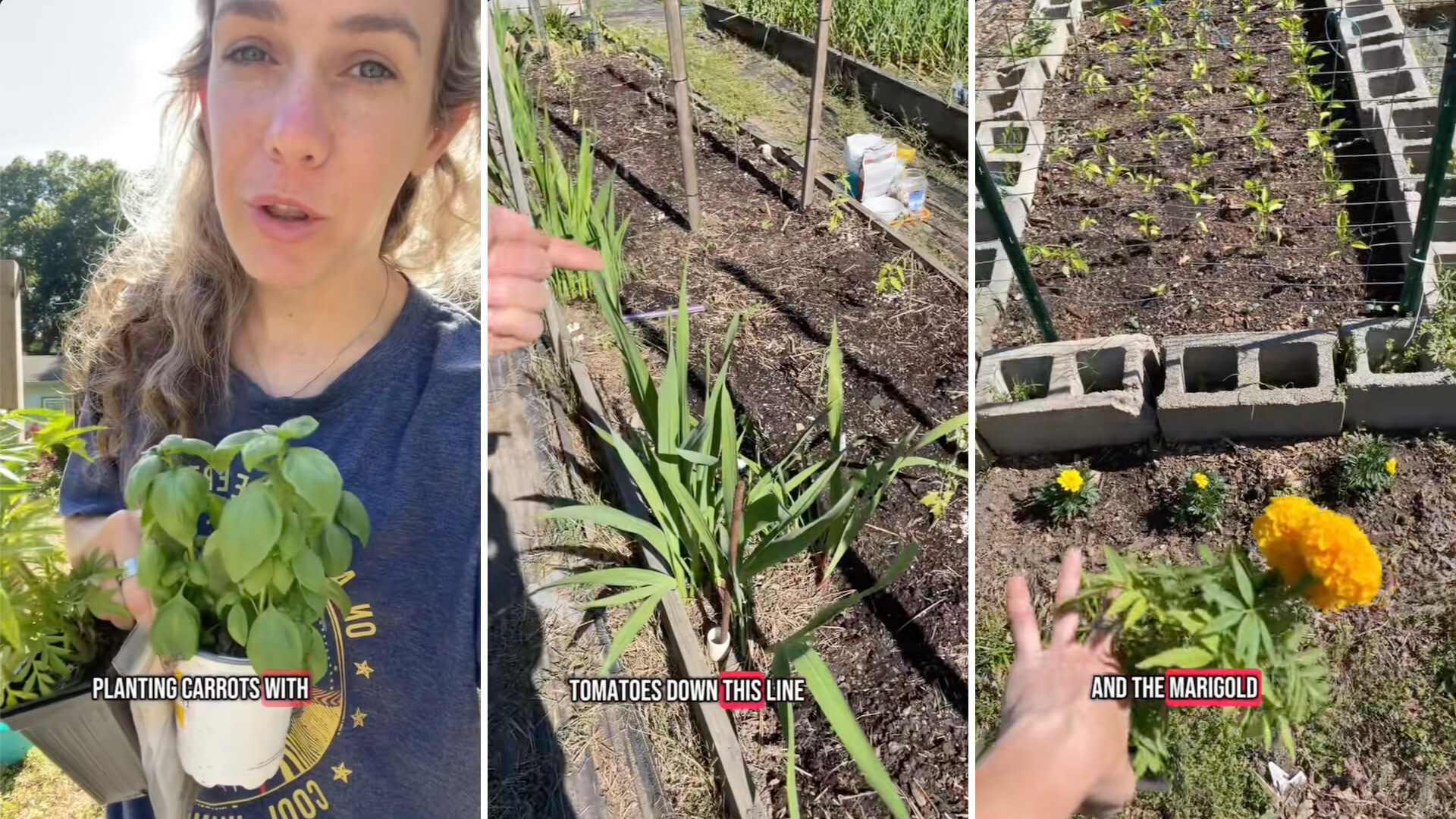 TikToker Laura (@dirtandwinemom) takes an all-purpose approach, teaching new gardeners how to grow their food and protect their food supply with a careful selection of companion plants.