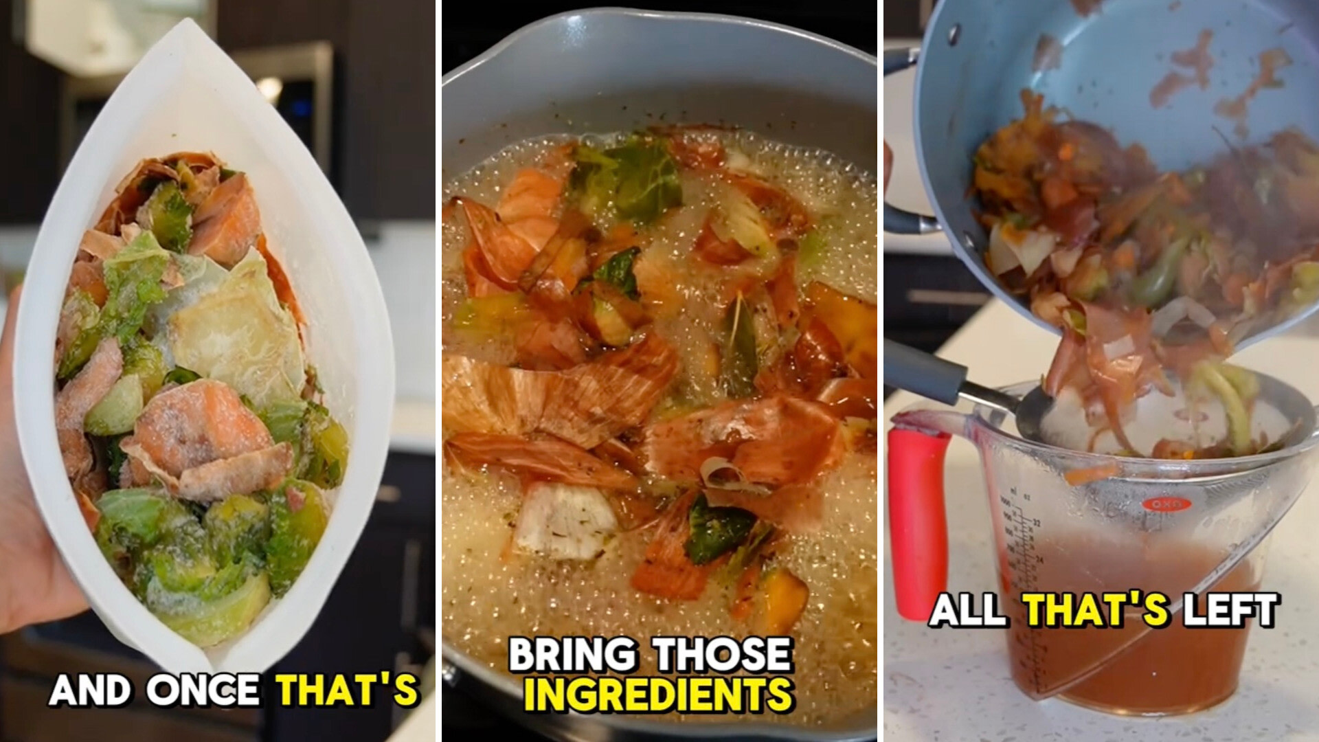 TikTok user Sustainability Matters (@sustainabilitymattersva) offers up a way to make vegetable broth that utilizes everything down to discarded onion skin.