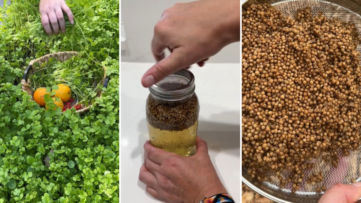 If you have coriander seeds in your pantry, you have unsprouted cilantro. Brianne said, "Coriander and cilantro come from the same plant."