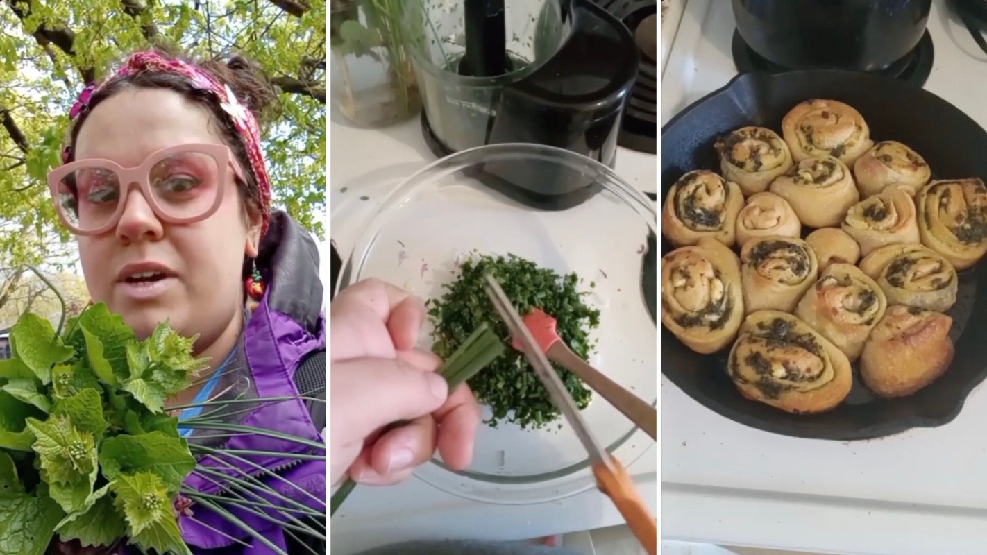 "We used invasive weeds to make these bomb rolls, and it's probably one of the best ways I've ever eaten weeds," the video's caption says. "Take those invasive greens and turn them into delicious dishes!"