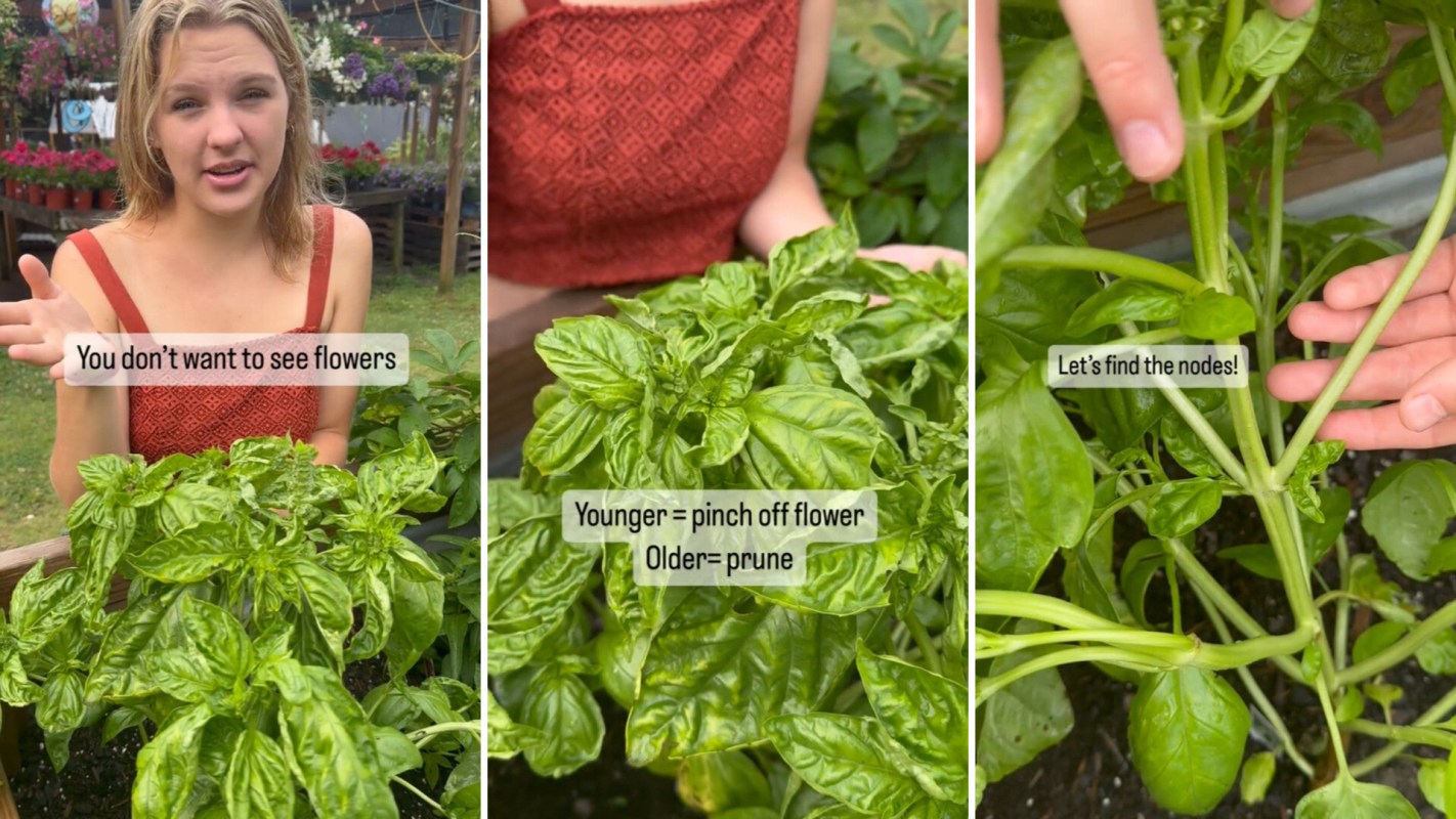 The video highlights two key tips for managing basil. One is to pinch off flowers when they appear. This prevents bolting, which begins the process of a plant dying and makes its leaves taste bitter. Even once basil has flowered, it's possible to harvest seeds for replanting next year.