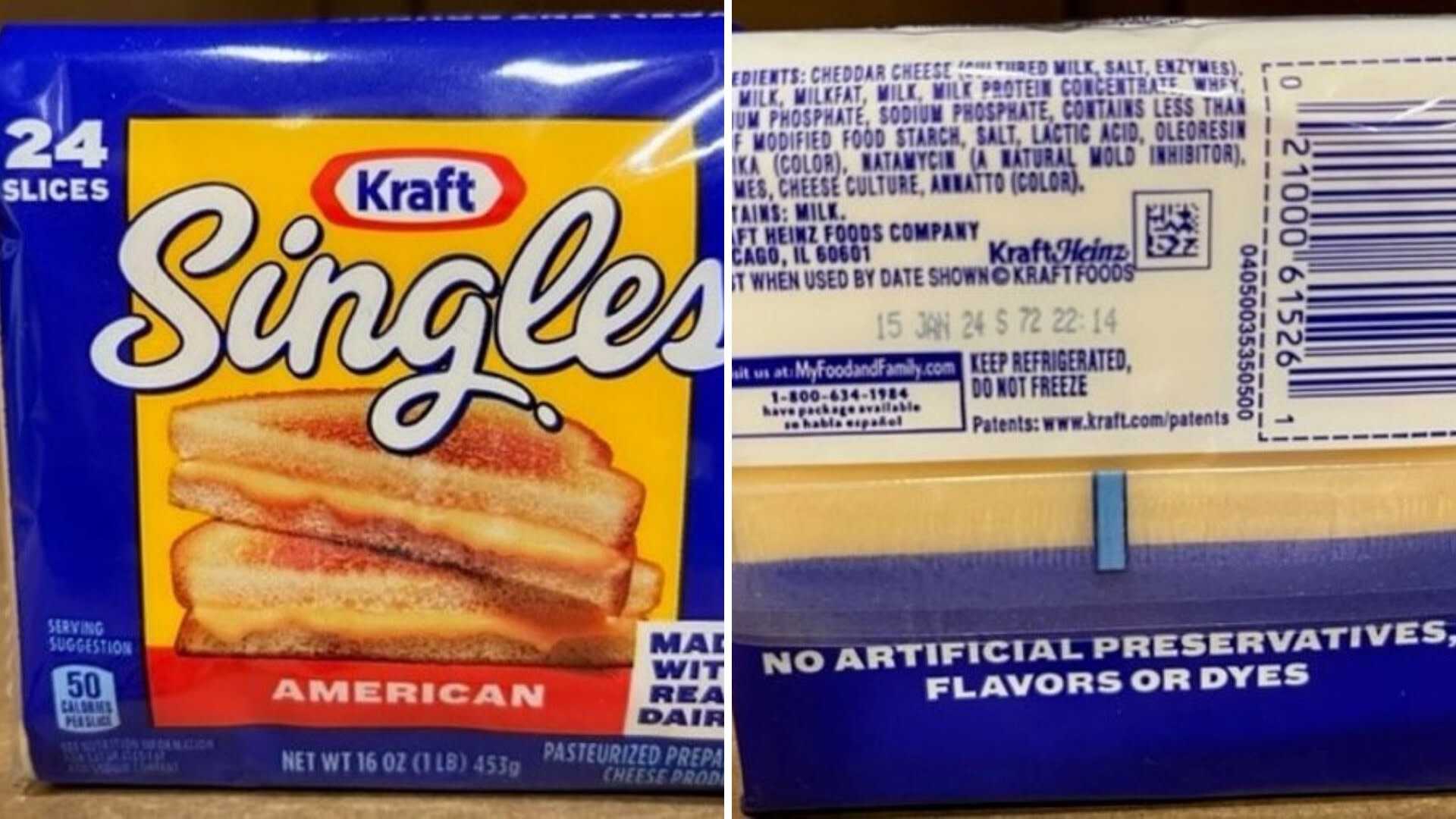 Among the products affected are packages of 16-ounce Kraft Singles American Pasteurized Prepared Cheese Product and three-pound multipacks of Kraft Singles American Pasteurized Prepared Cheese Product.