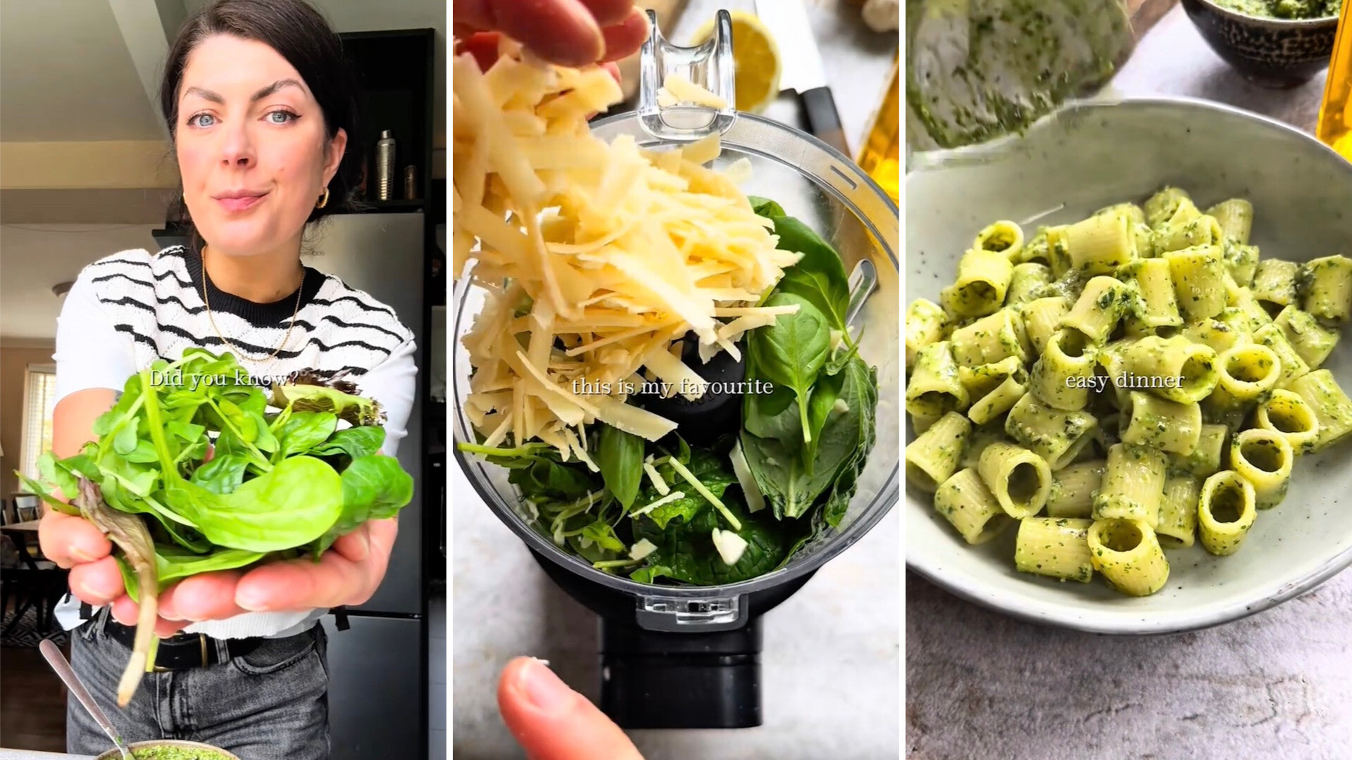 Emily on Toast (@emilyontoast) posted the video as part of Food Waste Action Week, demonstrating how she turns "limp salad leaves into a delicious pesto."